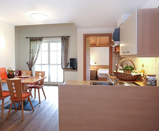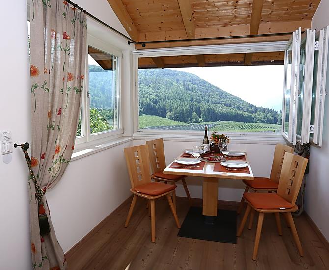 The Waldthalerhof is nestled in the hamlet of Montiggl, in the middle of a nature reserve, just a few minutes' walk from the Montiggler lakes. Montiggl am See is an original and lovely village with around 100 inhabitants. Old farms and estates characterize the scene. Montiggl is located at 500 m above sea level, and belongs to the municipality of Eppan on the South Tyrolean Wine Route with the main town of St. Michael. Four apartments await you on the farm itself. At the house we have a garden with a wooden terrace, garden furniture, parasols and a sunbathing lawn, where our guests like to spend time. Your children are very welcome to play in the playhouse or in the sandpit or go on the swings. There is also a covered terrace with table football and table tennis.