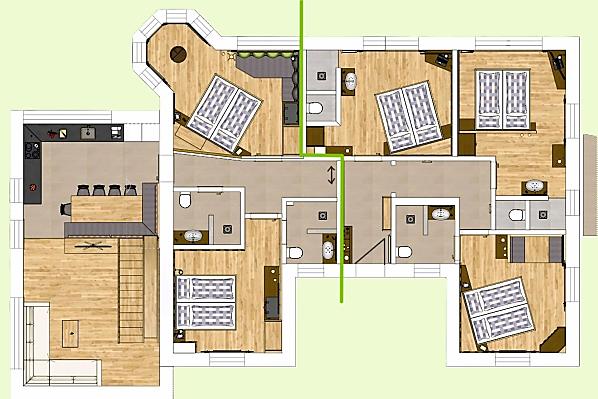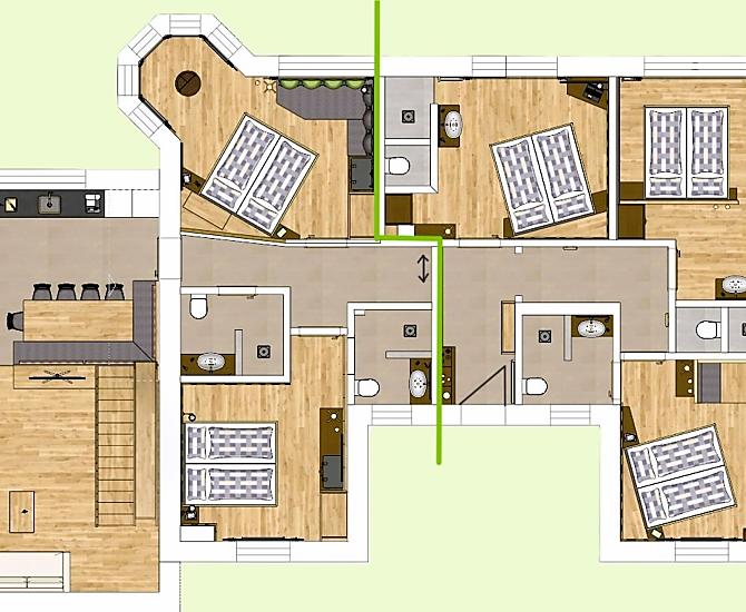 A place with lots of space, in the midst of nature. You can have a great holiday with family and friends and there's still enough space to withdraw to for some me-time. The holiday flat can be extended to encompass five separate bedrooms with five bathrooms on the same floor.