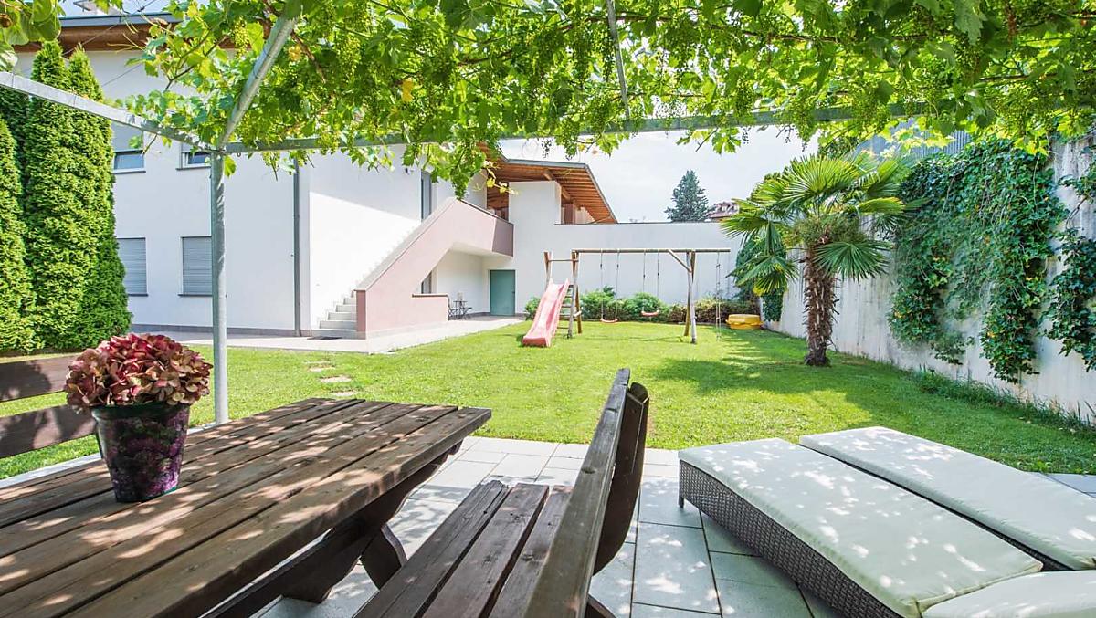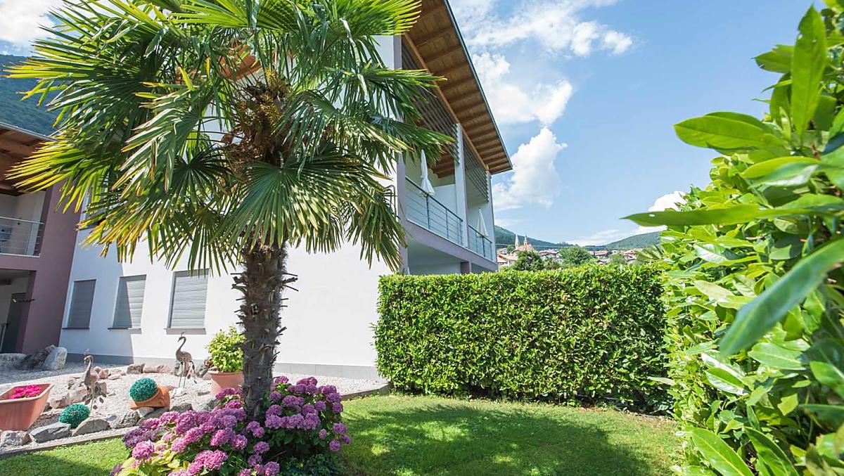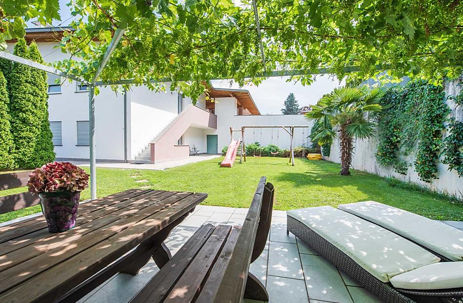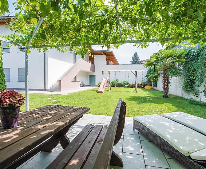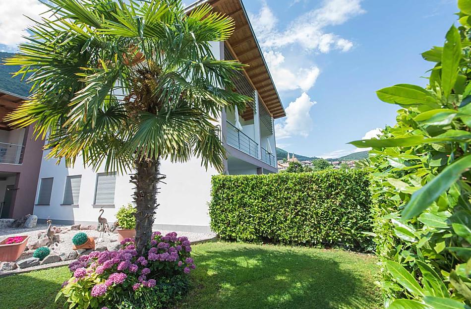 Neu erbauter, moderner Obstbauernhof im Süden Südtirols mit sonnigen Ferienwohnungen und schönem Panoramablick über die Obst- und Weinlandschaft sowie auf die Dolomiten.