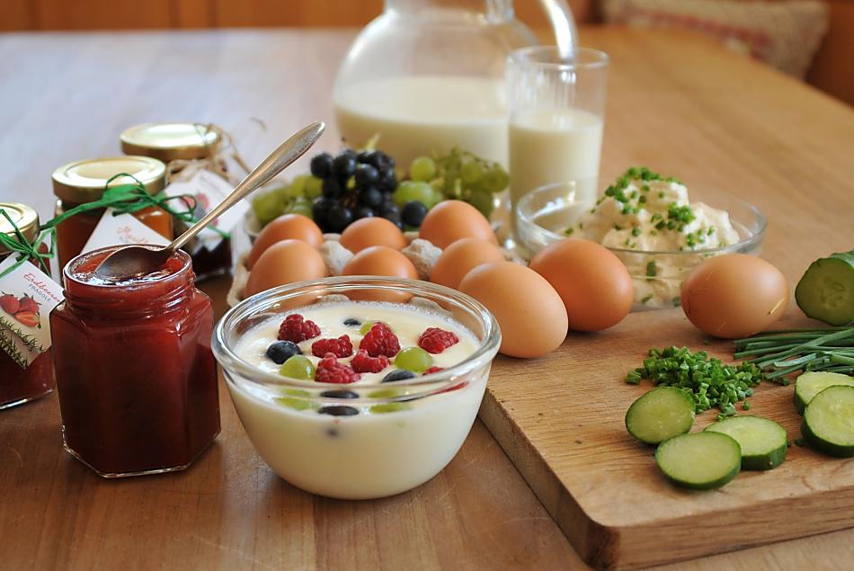 milk, yoghurt, eggs, fruit jams, cordial ...