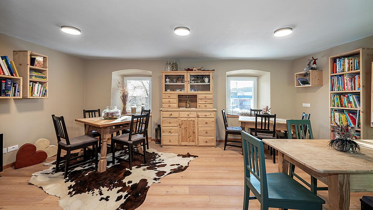 - farm 'Stube' (wooden floor, books, reading corner, WiFi, games)