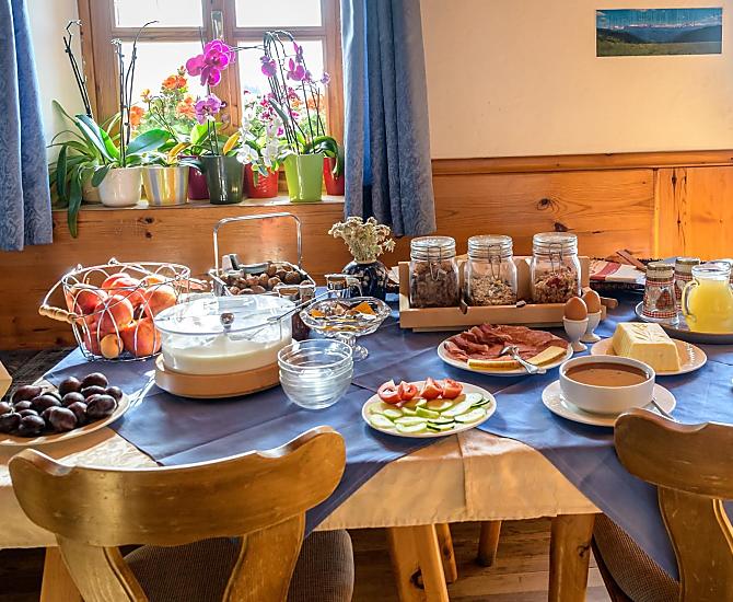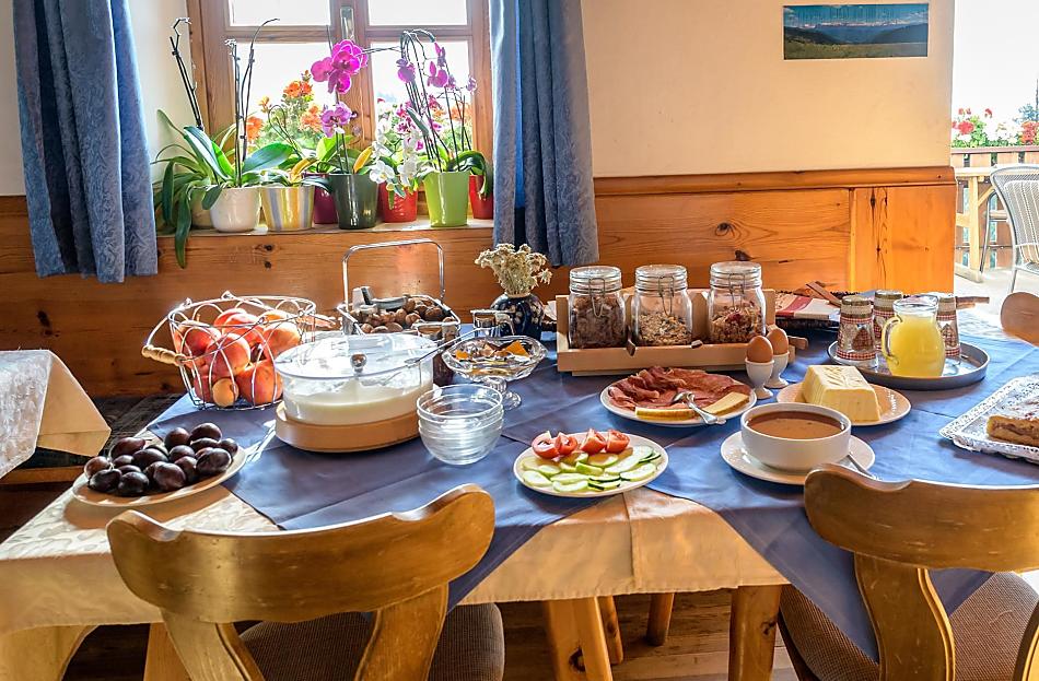 - Farm's own products at breakfast: milk, yoghurt, butter, speck, sausages, eggs, fruit jams, cordial, herb teas, baked goods, fresh vegetables in season, fresh fruit in season