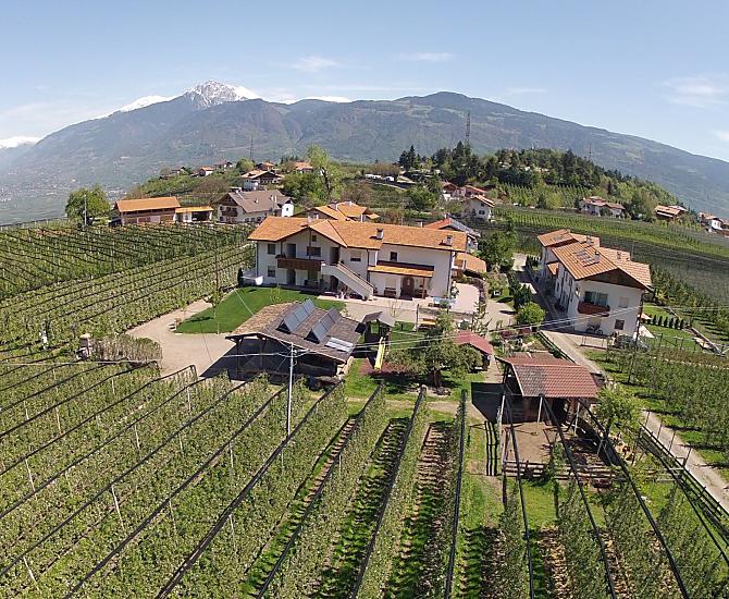 Drive to Lana via the MeBo expressway and on to Oberlana. Leave the roundabout towards Gampenpass. After about three kilometers turn right in the direction of Völlan. Our farm is about three kilometers further at the beginning of the village on the right-hand side.