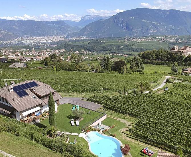 Take the Brenner Autobahn to the Bozen-Süd exit. There you are only a few kilometers away from your holiday destination. Take the MeBo expressway in the direction of Meran and leave it at the first exit in the direction of Eppan/Kaltern. Turn right after approx. 5 km and you will reach the center of St. Michael-Eppan. Head in the direction of Eppan Berg, follow the signs and you will easily find us.