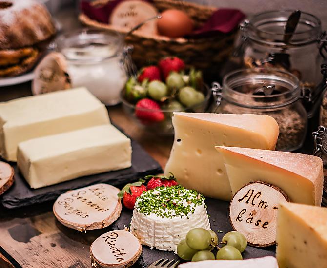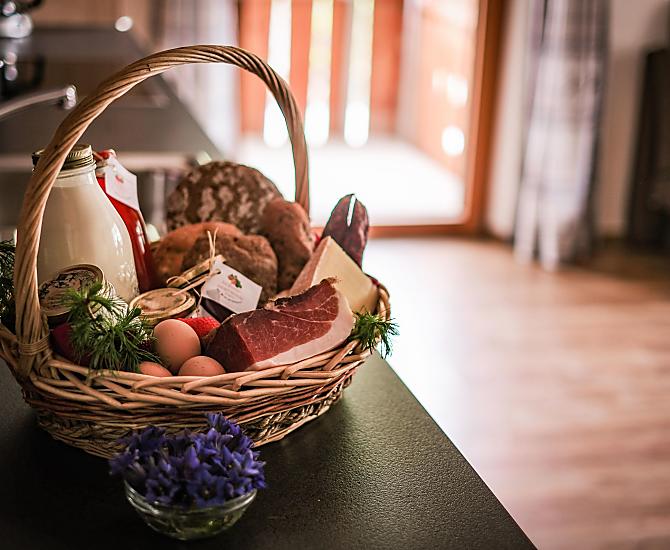 - Farm's own products at breakfast: milk, yoghurt, cheese, butter, other milk products, speck, sausages, eggs, honey, fruit jams, cordial, fruit juice, herb teas, bread, fresh vegetables in season, fresh fruit in season