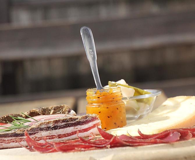 Blackcurrant jam, Chestnut cream, House sausages, Pumpkin chutney, Sauerkraut ...