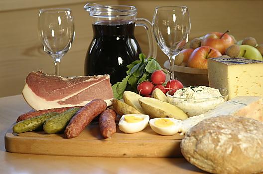 Farm's own products Zweigelt, Sauvignon, Pinot blanc ..., 'Kaminwurzen' salami, Sauerkraut ...