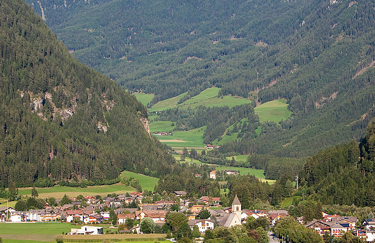 A holiday staying on a farm in Pfitsch has a lot to offer down in the valley as well as in the mountains. The castle of Schloss Moos, one of the oldest buildings in Wiesen, is on the edge of Sterzinger Moos. It was first mentioned in records in 1325 and is one of the few fortresses in South Tyrol that is not set on a hill. It was extensively converted in 1950, but retains its character. Its striking bay windows are typical. It is now a retirement home.