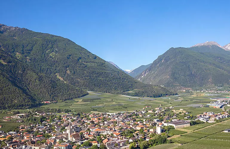 A holiday flat or room on a farm in Latsch makes the ideal base for lots of hikes. The Vinschgau high alpine path, with a total length of over 100 kilometres, leads past a number of viewpoints.