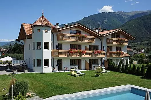 The main villages in the municipality, Latsch, Goldrain and Morter, are mostly in the valley basin. The houses of Tarsch, on the other hand, occupy a slightly elevated position on a debris flow cone that is visible for miles around – a geological peculiarity of the Vinschgau valley. There is even one holiday flat in Latsch situated at 1,700 metres above sea level: St. Martin im Kofel on the steep slope of the Sonnenberg may be reached in a few minutes by cable car from the centre of Latsch.