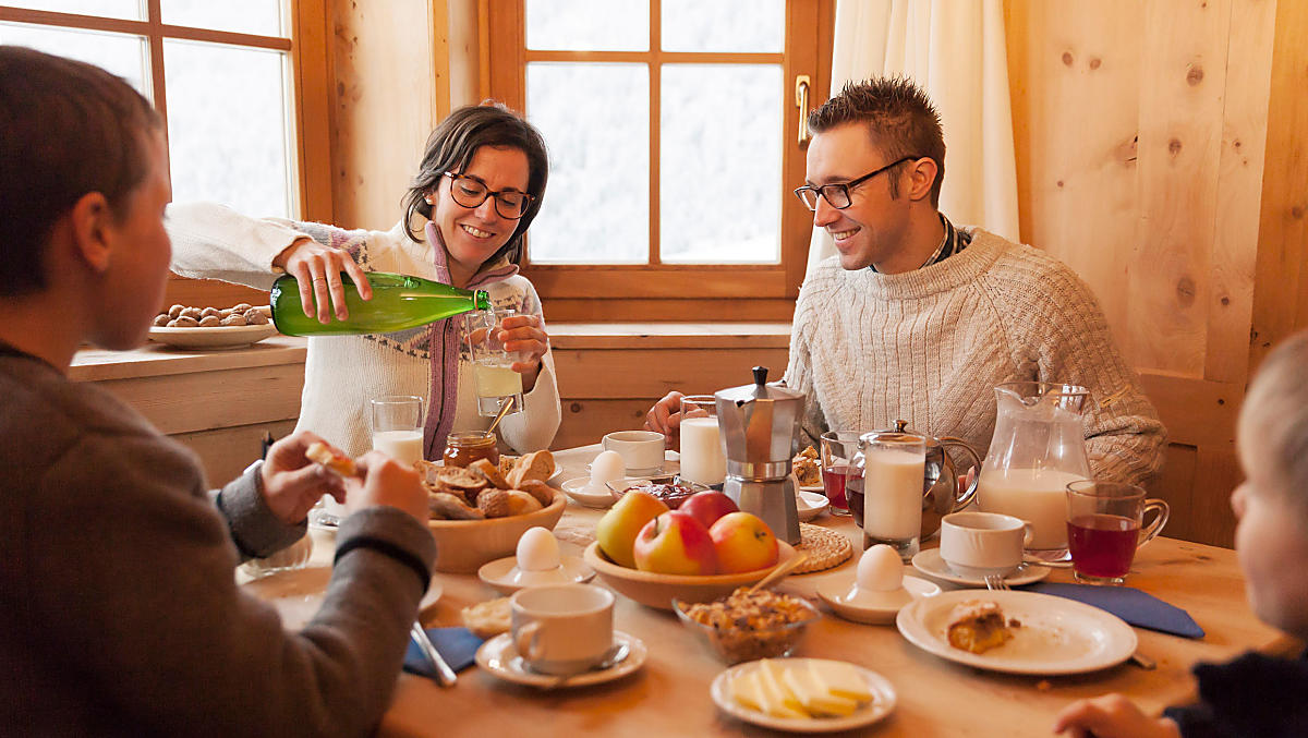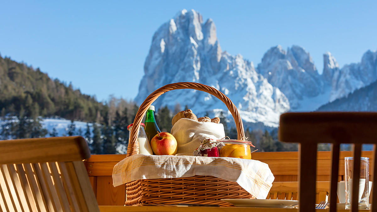 Breakfast on the farm in South Tyrol thrives on its variety. But no matter which version, the products from the farm play the main role. Hearty 'Speck' and tasty cheese from the farm, as well as aromatic herbs and sweet syrups from the farm garden. will find their way onto your breakfast table. The farmer will carefully prepare the fresh, natural delicacies and serve them in the cosy farmhouse parlour or on the sunny terrace. This is what a farm holiday feels like.