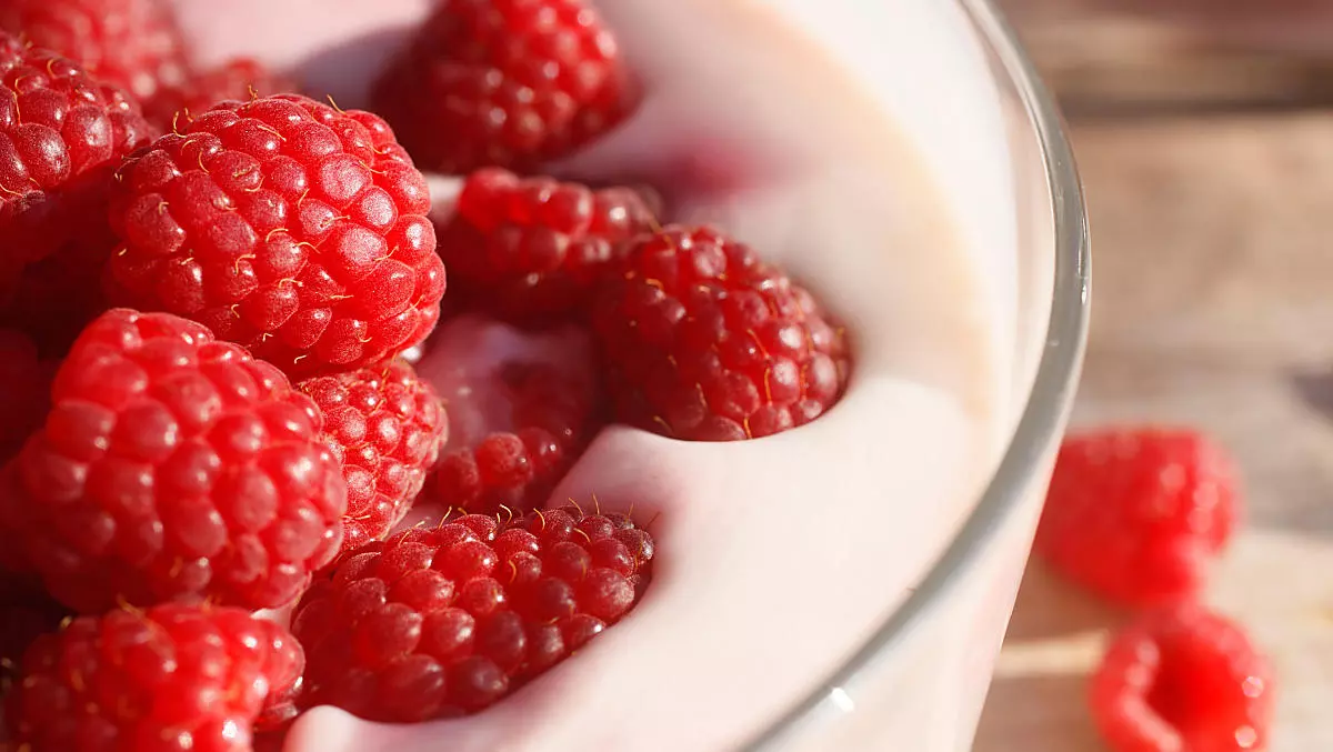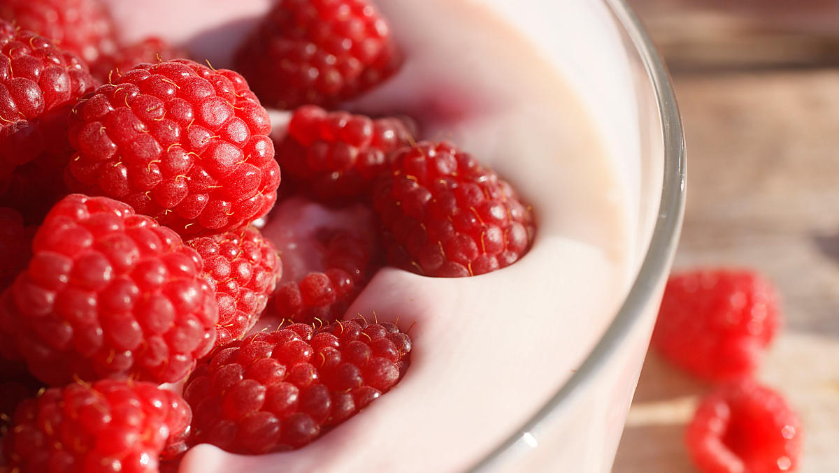 Fresh raspberries from the bush combined with natural yoghurt - just one of the many creative variations that the farmer conjures up with products from the farm.