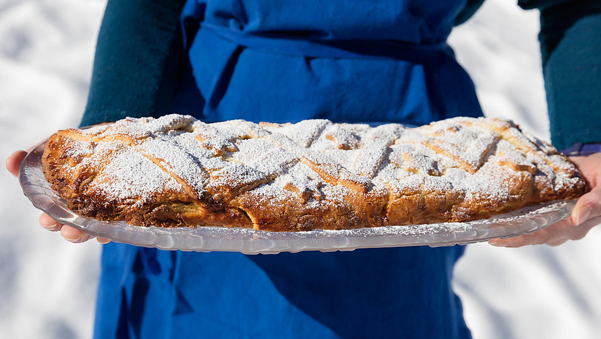 A piece of South Tyrolean apple strudel made from short pastry sweetens your morning, especially if it's homemade and served warm from the oven.