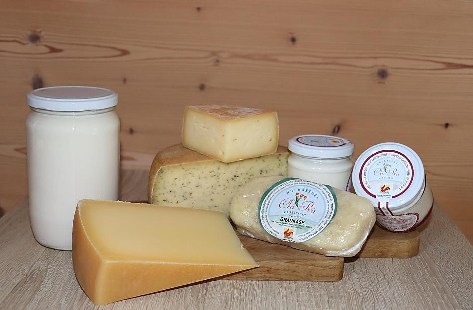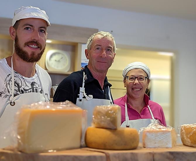 Michele Valentin worked for almost 20 years as a bricklayer and snow cat driver and, after work, on the weekends and on holiday, also ran his parents' mountain farm. But it has always been his wish to be able to live off the farm alone, so he quit both of his jobs and set up a farm cheese dairy in 2006. The right decision for you and your family, but also to the delight of the many enthusiastic customers. The whole family supports all the work. His wife Lucia processes the milk into yoghurt and butter and maintains contact with the customers. His son Fabian inherited his father's passion for cheese making and produces the award-winning hard and semi-hard cheeses on the farm. The two daughters Daniela and Silvia help out in the farm shop during the summer.