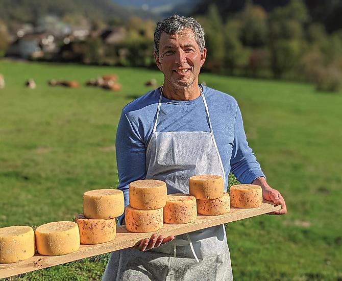 The milk for the delicious cheeses comes entirely from the farm's own cows. One of the reasons for the high milk quality is that they spend the entire summer on pasture. In winter, when the meadows around the farm are covered with snow, the cows can move freely in the airy pen. There you have a clear view to the south and to the famous Kronplatz. Silage is not used at all when feeding.