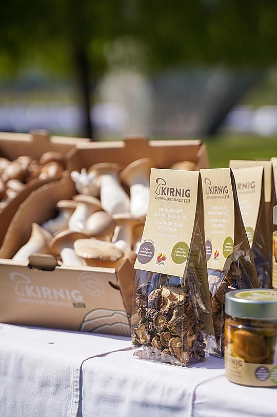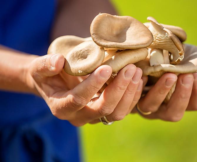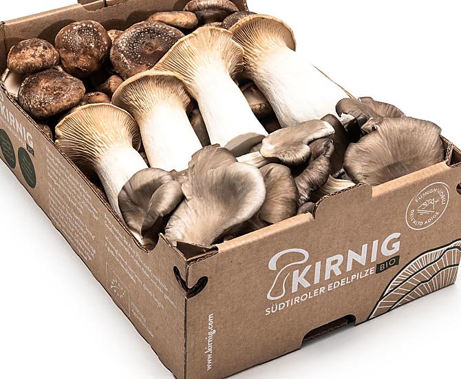 The mushrooms are grown at Hof im Thal in perfectly air-conditioned rooms in the old barn. Only wood chips are used as a substrate. These are inoculated with the desired fungal cultures and completely infused with them on site. Then the mushrooms begin to grow. Organic cultivation guarantees that the mushrooms are free from pollutants and pesticide residues.