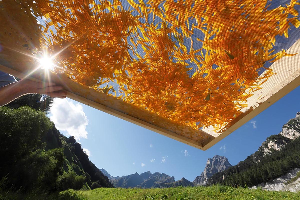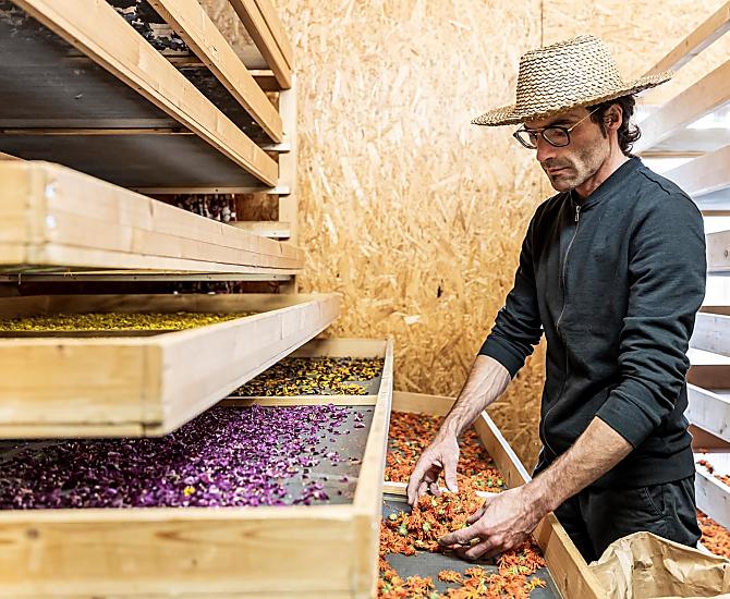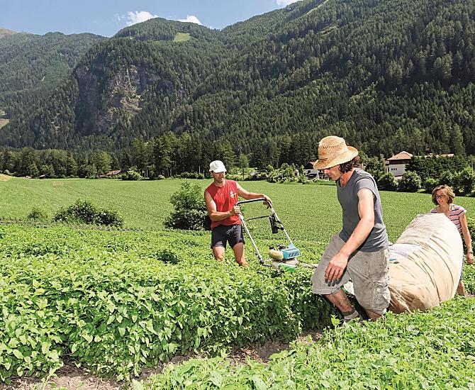 In the herb gardens at the Botenhof in Pflersch and at the Steirerhof in Wiesen in southern Wipptal, medicinal and aromatic herbs are grown according to organic guidelines. The different altitudes and soil conditions of the gardens make it possible to optimally meet the natural needs of the plants.