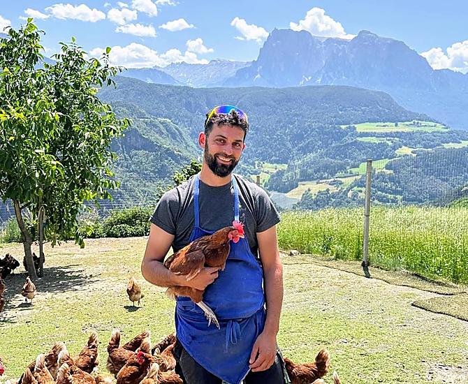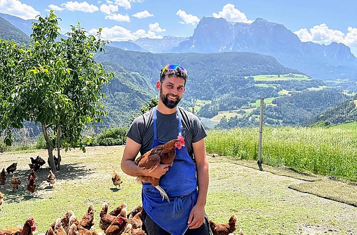 The chickens lead an all-round beautiful life on the meadows of the Pennhof in Barbian. The organic feeding of plant origin, unrestricted access to the outdoors and keeping without antibiotic performance enhancers ensures the impeccable quality of the free-range eggs.