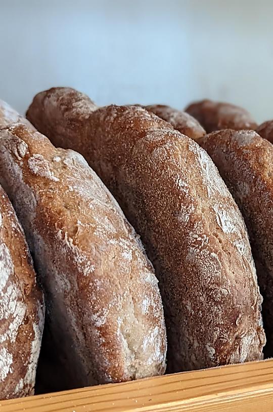 From grain to bread, and all from our own hands.,From grain to bread, and all from our own hands.