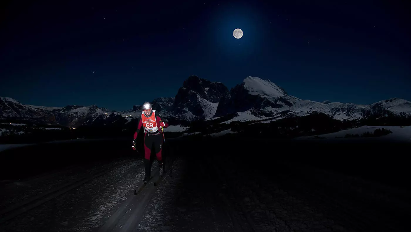 Under the light of the full moon, athletes compete in this classic diagonal stride cross-country night race.