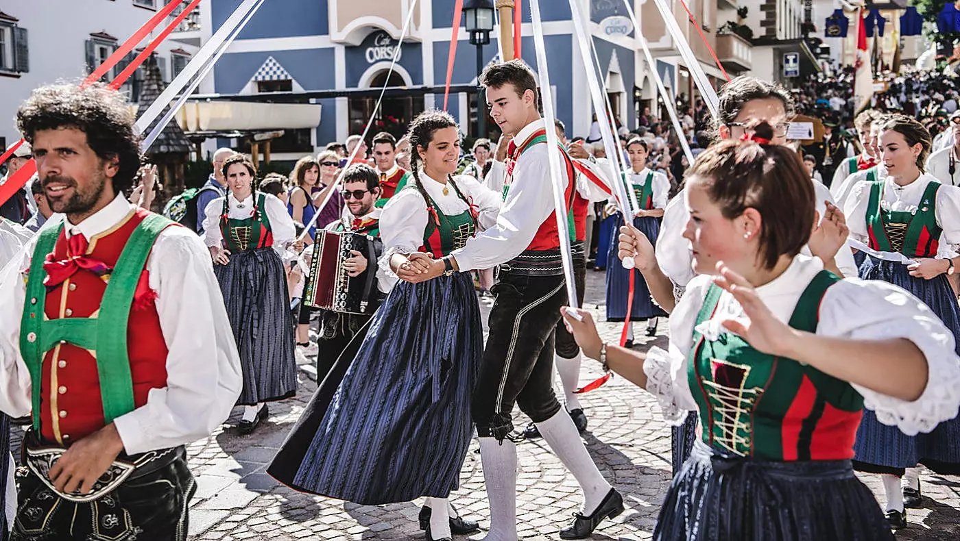 The traditional costume parade is part of a large festival where you can admire traditional folk dances, listen to Gröden valley music, and enjoy regional specialities.