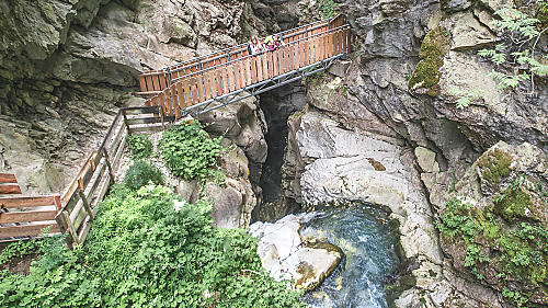 The Austrian Alpine Association laid the first secured footpath featuring a series of steps and bridges in 1896. At the time, the impressive Gilfenklamm gorge was named 'Kaiser Franz Josef Klamm'. There is a commemorative plaque along the way to remind us of this fact.