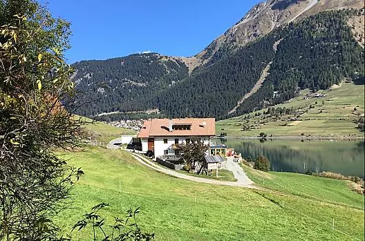 Nowadays, Reschensee lake is a much-loved holiday destination all the year round. The vast majority of the population of Reschen and Graun used to be livestock farmers, but some now work in the tourist trade. Holidaymakers on Reschensee lake appreciate the peace and quiet and the mild, high altitude climate of the Upper Vinschgau valley. The views of the mountains, including the highest mountain in South Tyrol, the Ortler, in the background, are amazing. There are lots of options for doing activities on Reschensee lake. At the start of a holiday, a leisurely stroll around the lake is called for. You can see the mountains and pasturelands up close, on the other hand, when you take the Panoramaweg path above Reschensee lake. 2,120-metre-high Haider Alm pasture may be reached by cable car from St. Valentin auf der Haide, which will take you to the start of the old High Mountain Path, where you can hike past magnificent old arolla pine trees up to Schöneben.