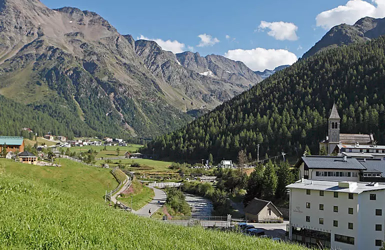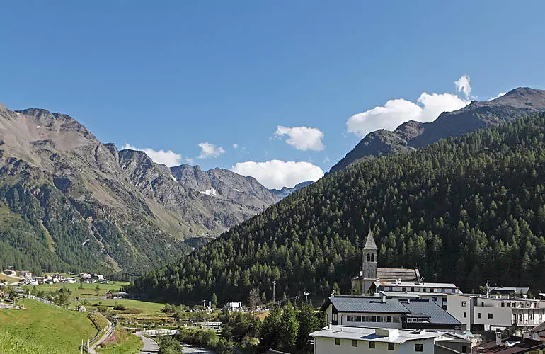 The road turns off at Prad am Stilfser Joch and leads up to 1,900 metres above sea level, where the village is situated. Anyone on holiday on a farm in Sulden will have a high-Alpine world at their fingertips. The around 400 villagers here are used to starting the day with views commonly seen on picture postcards, but guests staying in holiday flats or rooms are sure to enjoy the special experience of being treated to the sight of the high Ortlergruppe mountains in the morning again and again.