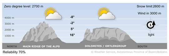 Maximum temperatures ranging from 18°C in Sterzing no to 24°C in Bolzano.